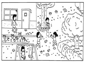 小朋友,看這兩張圖畫,把大家喜歡的環境畫○,讓大家不舒服的環境畫O: